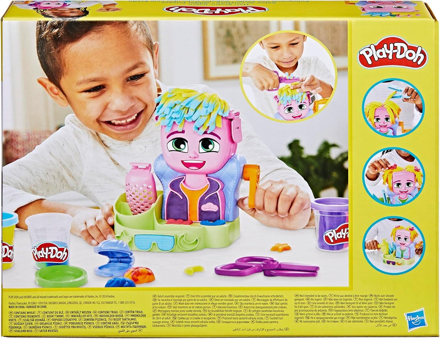 Kids can express their unique style with the Play-Doh Hair Stylin' Salon playset! Just load in some Play-Doh compound and start growing and styling silly Play-Doh hair! This Play-Doh kit includes lots of fun Play-Doh accessories like a curl-creating hair dryer, mohawk mold, crimper, and 2 different plates to make different hair textures. And with 12 ounces (340 g) of Play-Doh compound, including 3 dual-color cans, kids can make long or short styles! This indoor playset is perfect for imaginative play. Play-Doh sets for girls and boys make great gifts for 3 year olds and up. Hasbro, Play-Doh, and all related properties are trademarks of Hasbro.